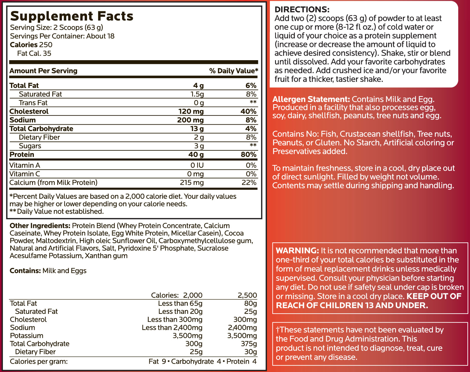 - Add two scoops of powder to one cup (8-10 fl oz.) of cold water or liquid of your choice (increase or decrease the amount of liquid to achieve desired consistency). Shake, stir or blend until dissolved. Add your favorite carbohydrates as needed. Add crushed ice and/or your favorite fruit for a thicker, tastier shake.