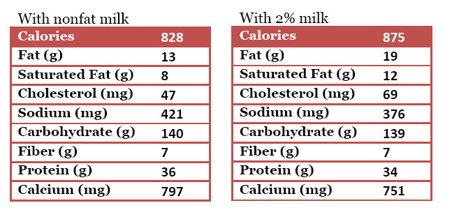 • 1  1/2 cups nonfat or 2% milk (or milk substitute of your choice)