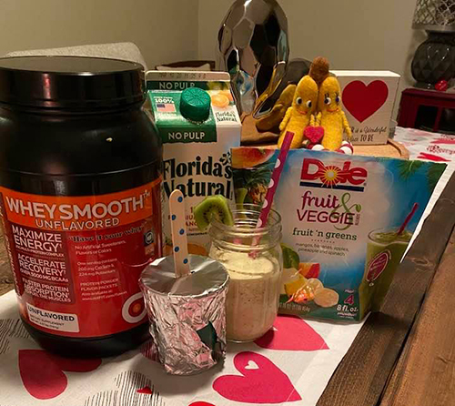 - 1/2 cup of Dole Fruit & Veggie Frozen Smoothie Mix
