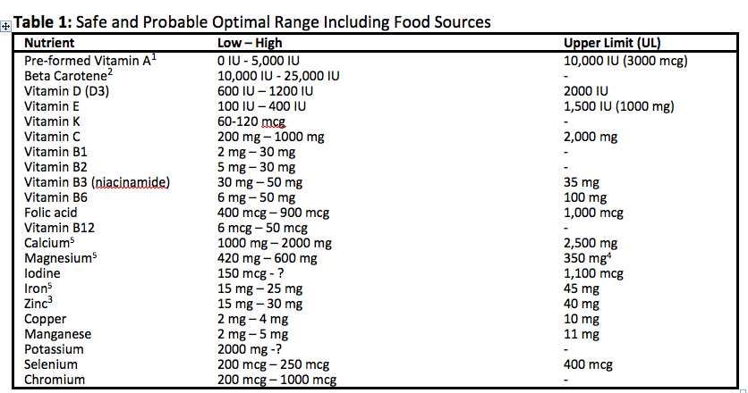 Chronic ingestion of nutrients anywhere in the range illustrated in Table 1 has been established as safe for the general population and may prove to be beneficial.